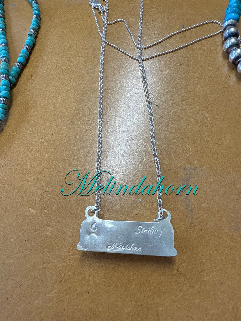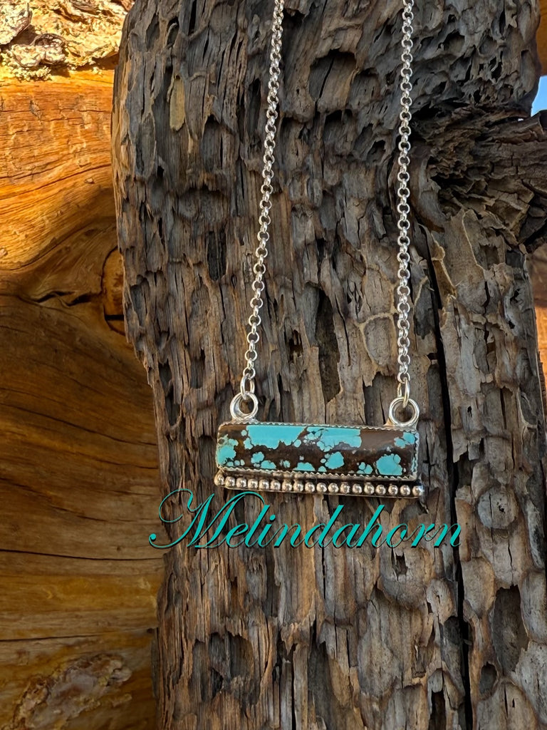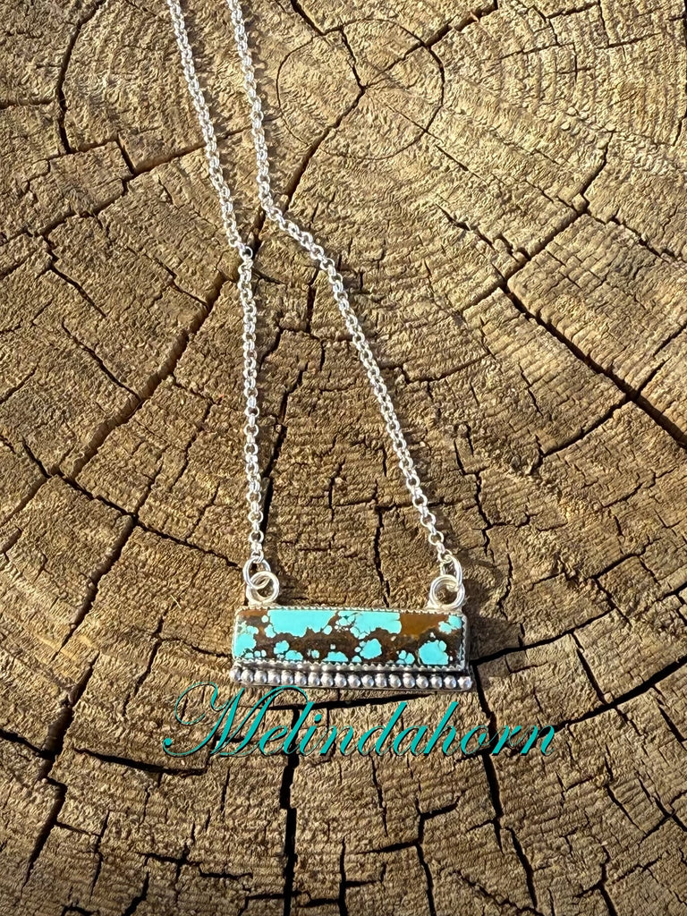 Yummy #8 turquoise bar set in sterling and find silver. Sterling 18” Rolo chain. My makers marks stamped and stamped sterling other beaded necklace sold separately