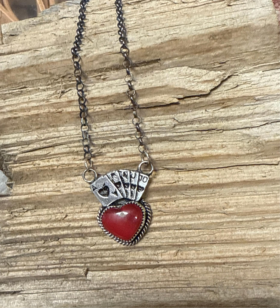 Rosarita heart with a Royal Flush. Chain is sterling silver and 19” tip to tip