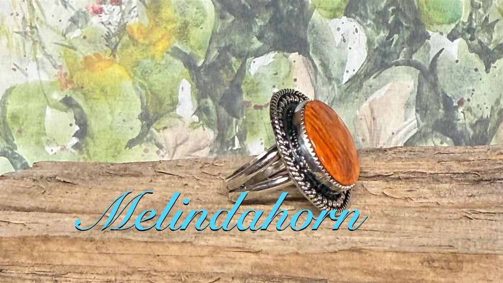 Quarter sized orange spiny and so spicy orange!! Sterling and fine setting on a split shank sterling silver size 8 1/2. All sales final on rings. No resizing