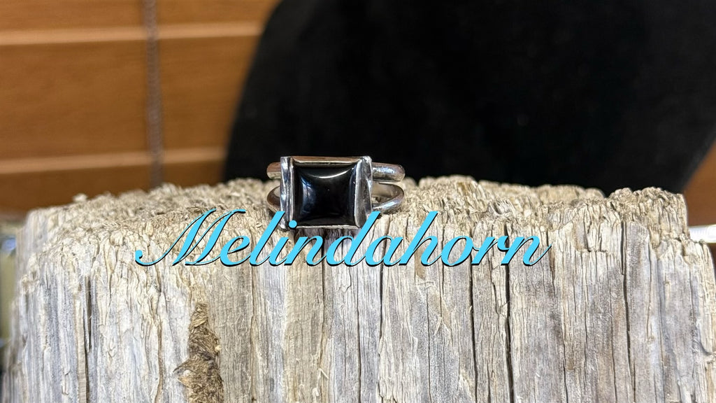 10 mm square onyx ring sterling silver and fine silver setting. Size 8 1/2. All sales final on rings. No resizing