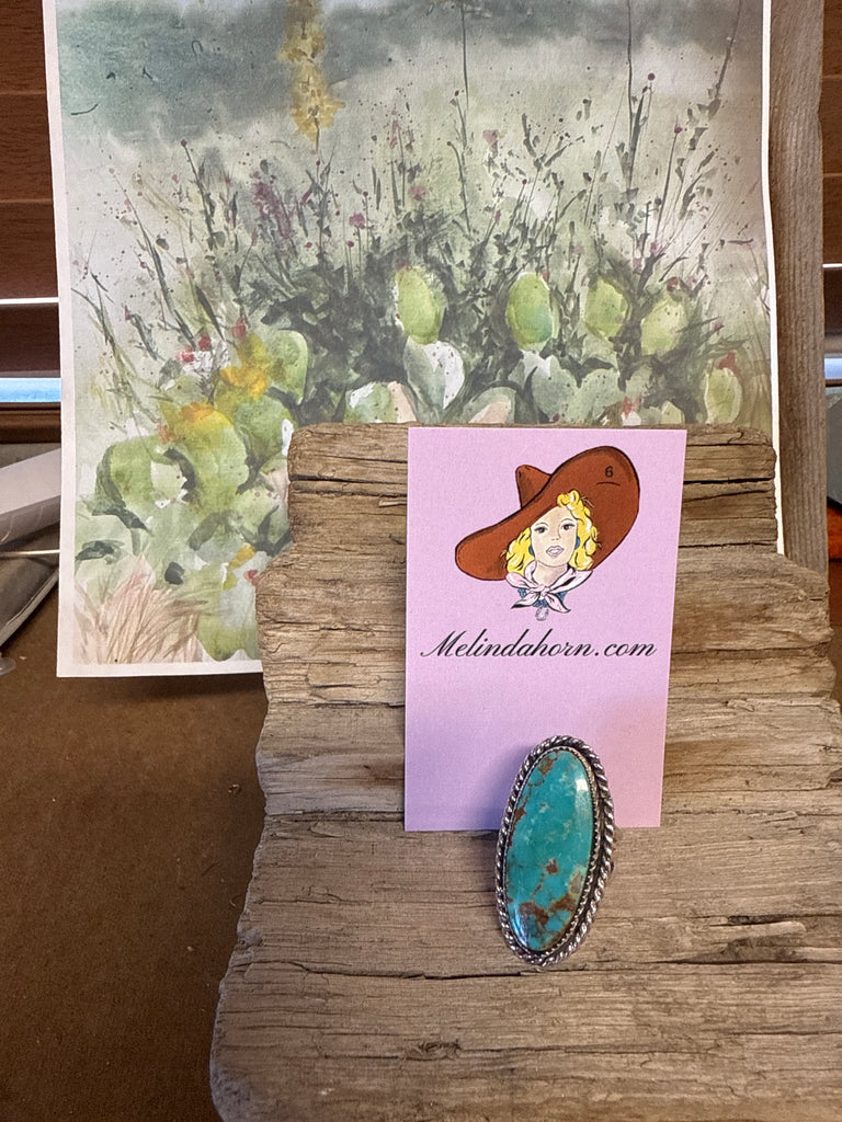 Teal Kingman turquoise from the Hardy Pit Mine. Sterling and fine silver setting and size 7 triple split shank. All sales final on rings. No resizing