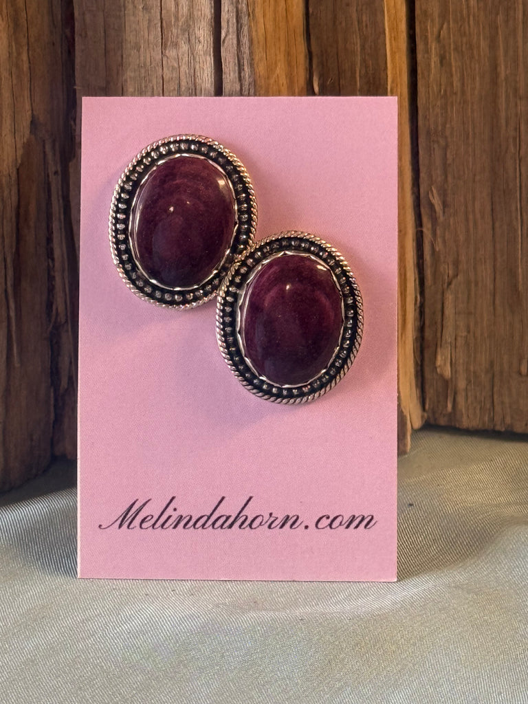 Deep purple spiny oyster shell set in fine and sterling silver with sterling posts.