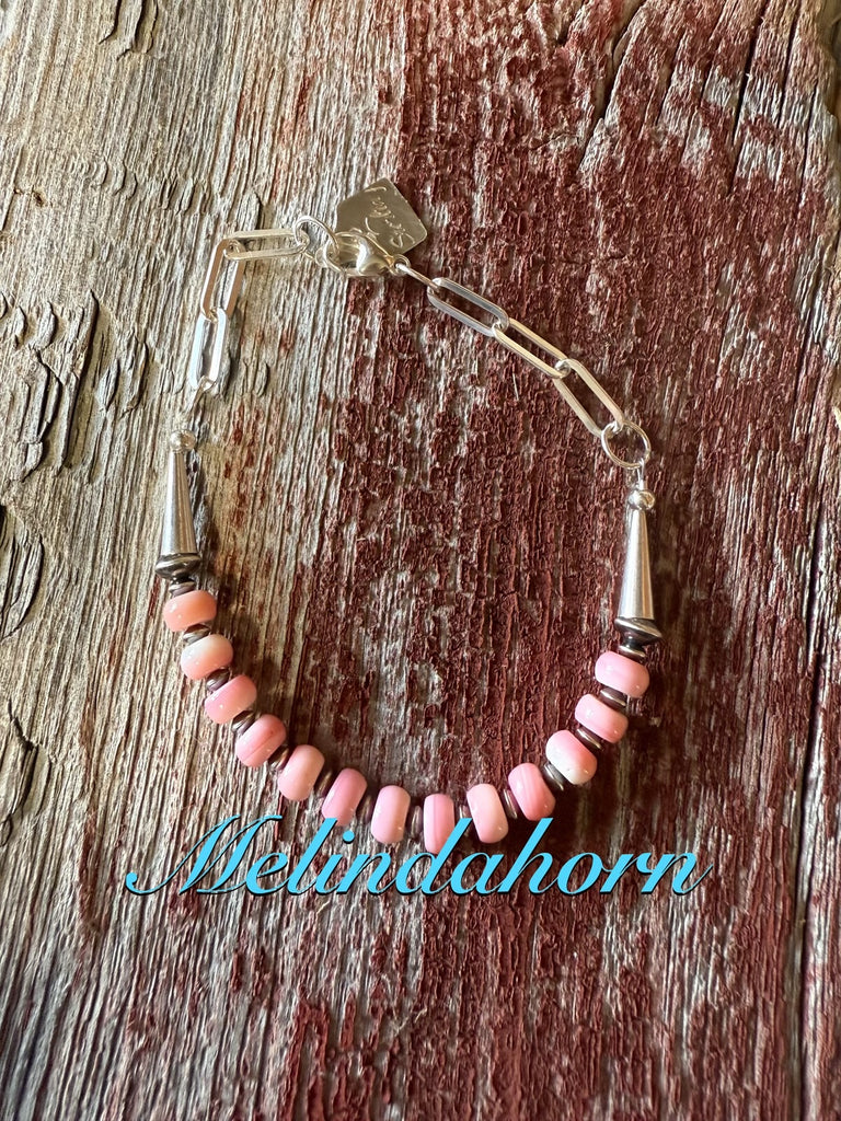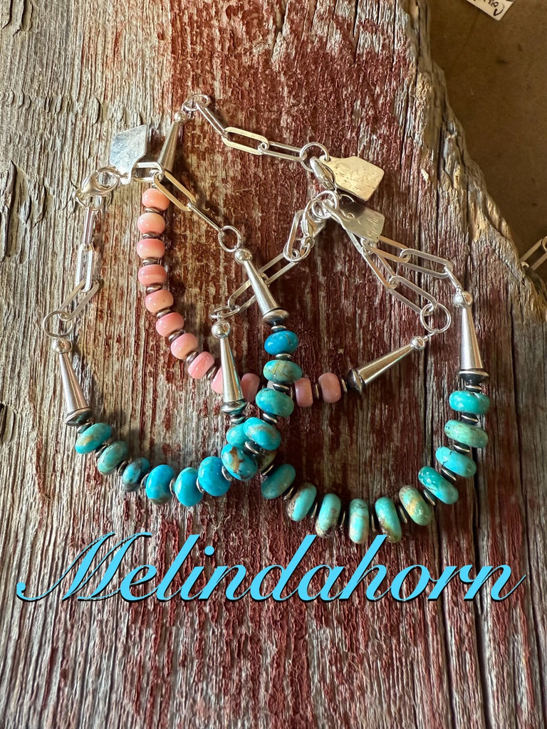 Sterling silver cow chain with a lobster clasp. Stone/shell are accented by tiny sterling beads