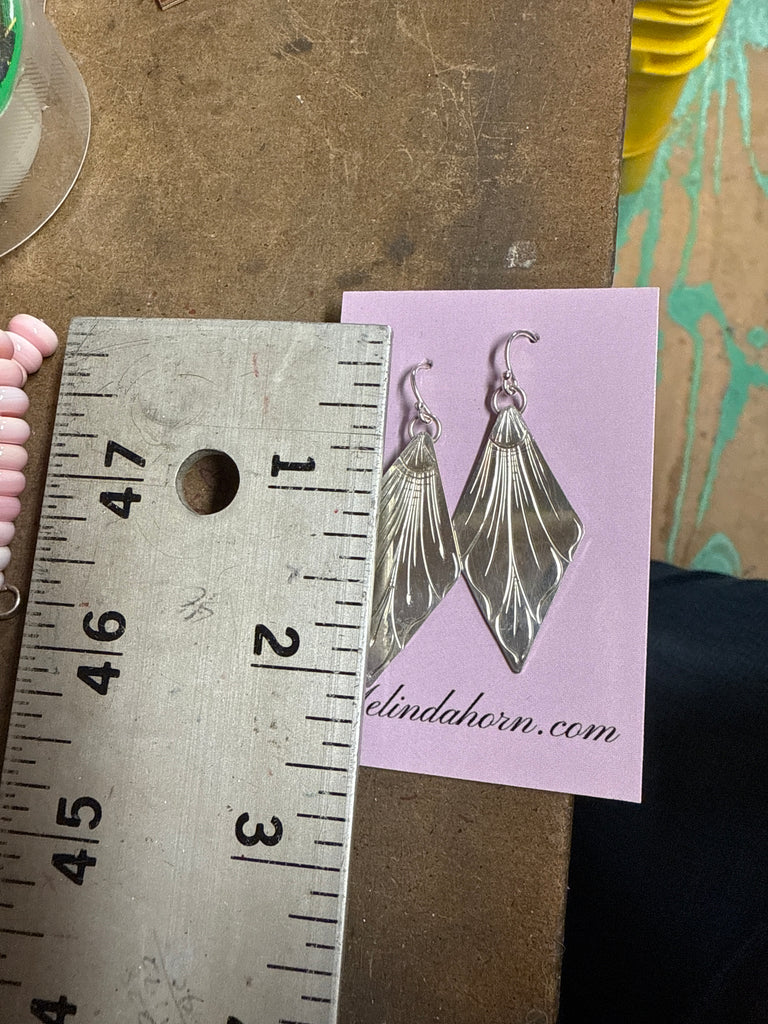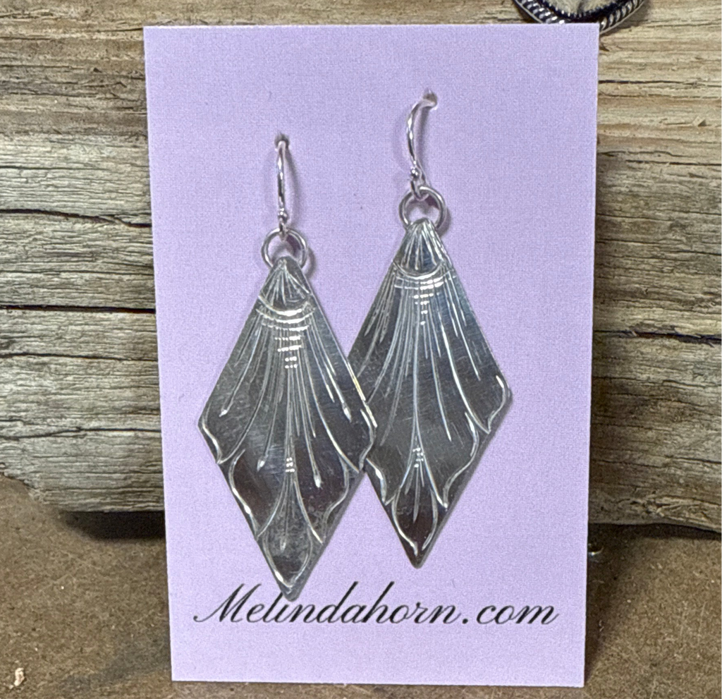 2” sterling silver engraved diamonds with sterling silver ear wires