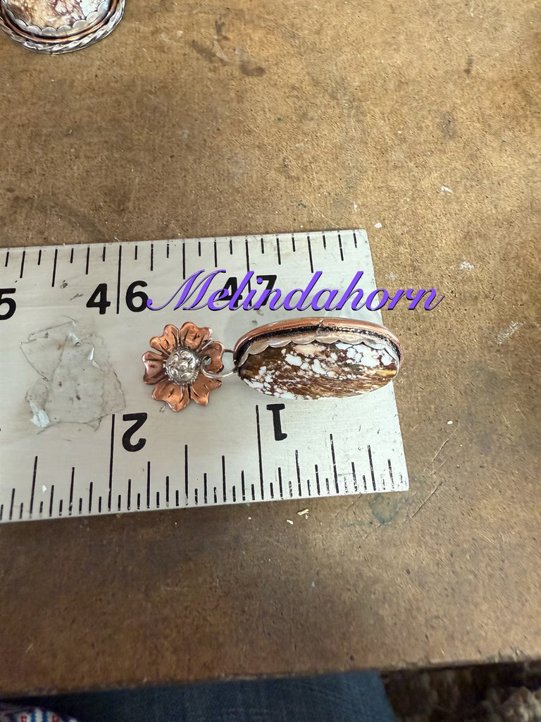 Beautiful Wild Horse stones set in sterling silver and copper with sterling posts. Flowers are copper with sterling accents